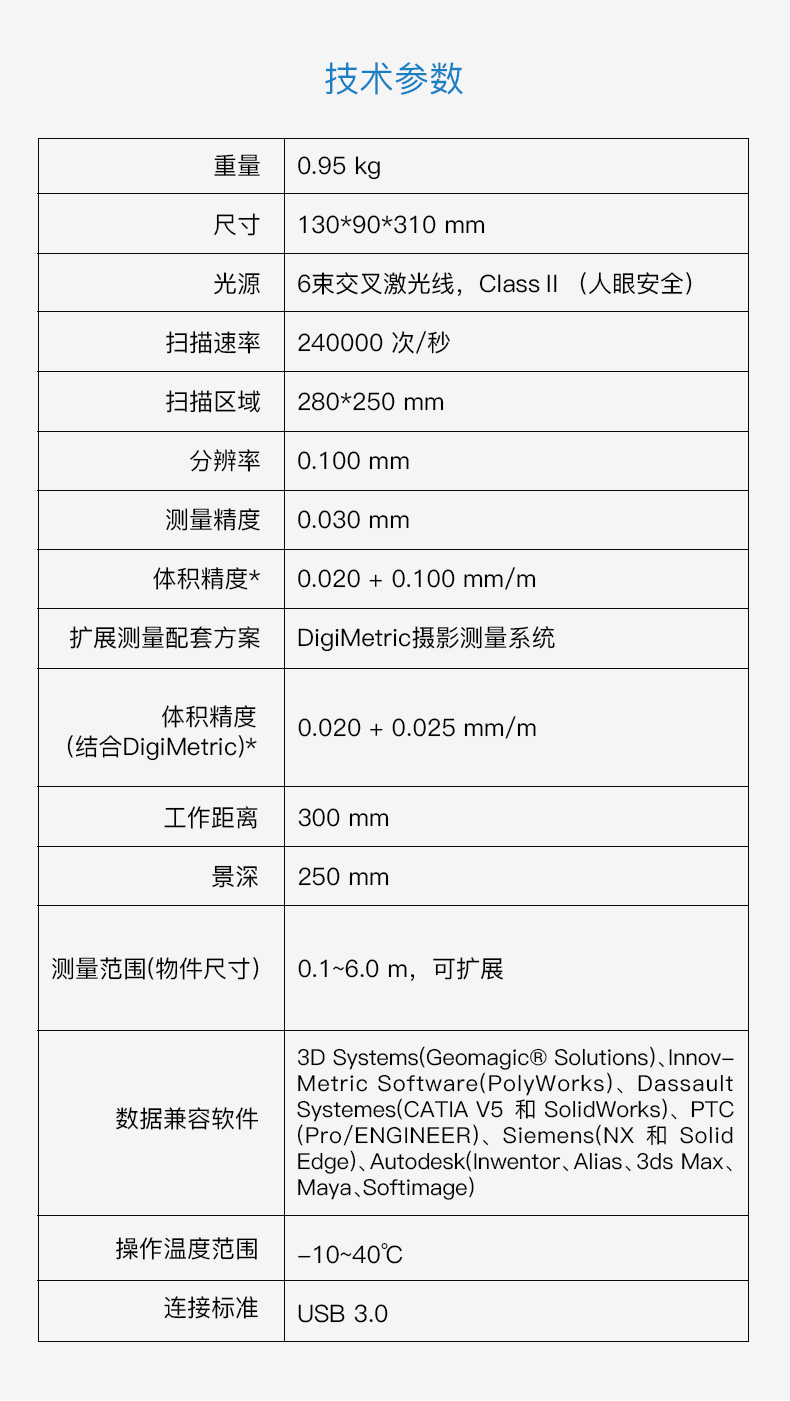 精度高达0.03mm,依据德国VDI/VDE 2634标准,高速扫描 :240000次/秒